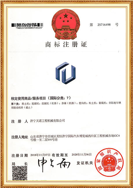 企業信用等級評價AAA級信用企業 理事單位 企業信用登記證書 高新技術企業 質量管理體系證書 一種新型刮平器實用新型專利證書 一種軌道挖掘機升降底盤實用新型專利證書 一種公路鐵路兩用挖掘機實用新型專利證書 一種防滑保護塊及防滑保護鏈 實用新型專利證書 軌道挖掘機升降底盤外觀設計專利證書 輪胎履帶兩用挖掘機外觀設計專利證書 割草斗外觀設計專利證書 外觀設計專利證書 實用新型專利證書 底盤加高挖掘機 挖掘機駕駛室抬升傾斜裝置